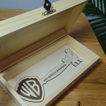 Nuestra Caja de Madera Personalizada con Llave de Viaje Sorpresa es el detalle perfecto para anunciar un viaje especial de una forma original y emocionante. Personaliza la tapa con un nombre, una frase o una dedicatoria, elige el color de la llave y entrega un momento único que quedará grabado para siempre. Fabricada en madera natural y grabada a láser, esta cajita está diseñada para contener la llave que abrirá la puerta a una aventura inolvidable: un viaje a la Warner, a Disney, a París, Londres, a ver un partido… o donde tú quieras sorprender. Ideal para cumpleaños, aniversarios, pedidas de mano, Navidad o simplemente para decir “te mereces una aventura”.