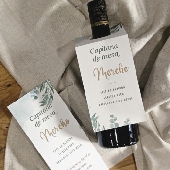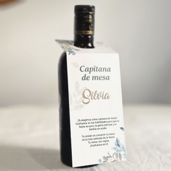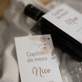La tarjeta está impresa a una cara en cartulina. El tamaño será de 23x9cm, si eliges la opción para colgar en botella, llevará el agujero.