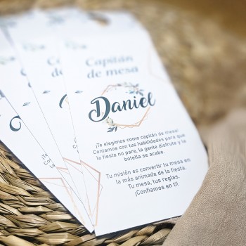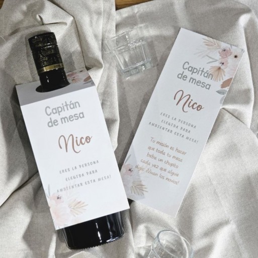 Personaliza como quieras la cartulina para el capitán de mesa! Disponible en formato para poner en una botella o simplemente una cartulina rectangular para dejar en la mesa. Elige un texto divertido y motivador para que el capitán cumpla su misión (puedes añadir las misiones que quieras).