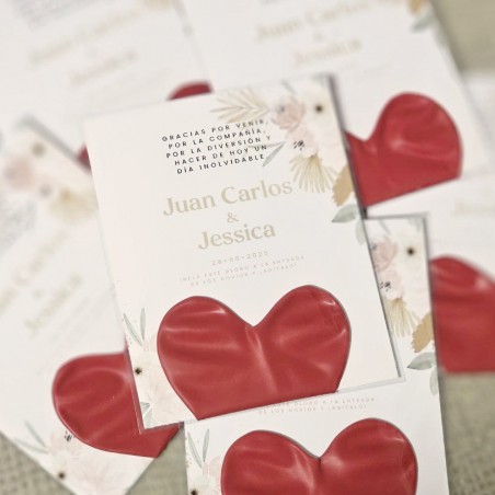 Dale la bienvenida a tus invitados con nuestro pack de bodas: tarjeta personalizada y globo en forma de corazón. Elige entre pack montado (100% terminado) o pack sin montar (te llegarán todas las piezas sueltas para que puedas montarlo tú). No te preocupes por el acabado si es personalizado, antes de enviarte el pedido contactaremos contigo para validar el diseño.