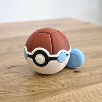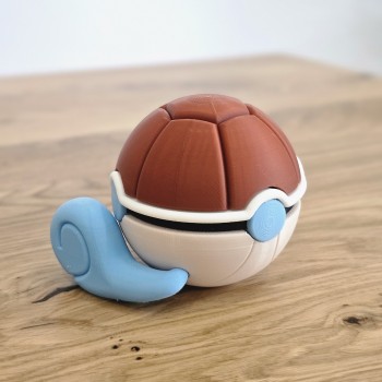 Poké Ball coleccionable inspirada en Squirtle, diseño original de N3D, fabricada mediante impresión 3D con acabados cuidados. Una pieza decorativa ideal para fans del universo Pokémon y coleccionistas, perfecta para regalar o completar tu colección.
