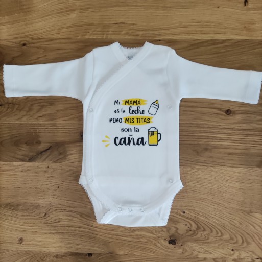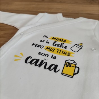 Nuestro body es de 100% algodón y hacemos la personalización con vinilo termo adhesivo. No se puede pasar la plancha encima del vinilo.