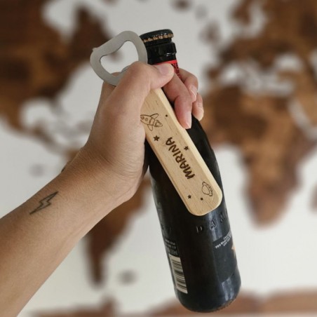 Prepárate para impresionar en tus eventos con este abridor de botellas de madera personalizado. Cada uno de nuestros abridores es una obra de arte única, diseñada según tus especificaciones. Desde nombres y fechas hasta imágenes y diseños personalizados, transformamos simples abridores en recuerdos memorables. Hecho a mano con madera de alta calidad, cada pieza es cuidadosamente grabada para garantizar la máxima durabilidad y estilo. Ya sea para bodas, fiestas de cumpleaños o regalos especiales, nuestro abridor de botellas personalizado es el complemento perfecto para cualquier ocasión. Haz que tus momentos especiales sean aún más memorables con este detalle único y personalizado.