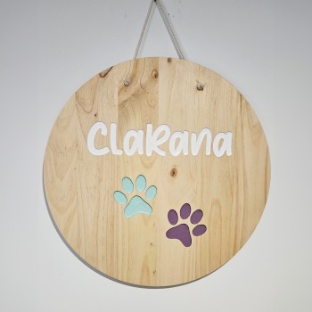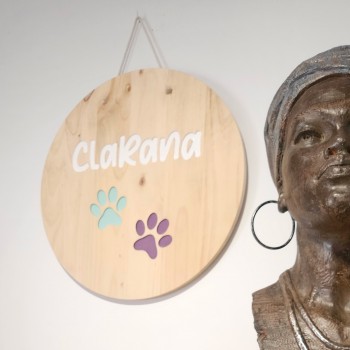 Madera de pino 100% natural de 1,8cm de grosor. Tamaño en formato circular de 55cm de diámetro aproximadamente. Tamaño en formato rectangular de 55cm de largo y un ancho proporcional al logotipo o dibujo elegido. Para otros tamaños consultadnos por correo o Instagram.