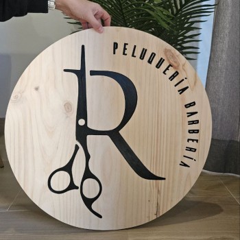 Decora cualquier lugar con tu logotipo o dibujo favorito. Cartel circular o rectangular hecho de madera de pino.
