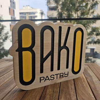 Logotipo, palabra o dibujo de pie grabado en la madera.