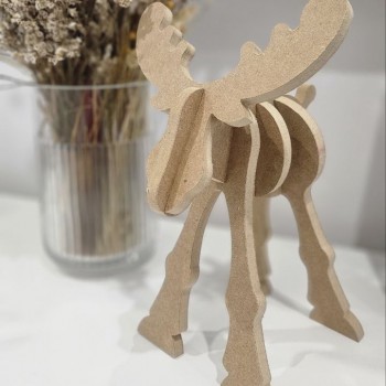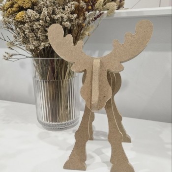 Madera mdf de 1cm de grosor. Las medidas del reno montado son unos 20cm de largo * 19cm de ancho * 29cm de alto. Si necesitas otro tamaño ponte en contacto con nosotros.