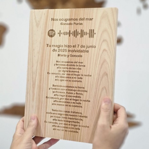 Tabla personalizada de madera con foto, dibujo, canción... grabado a láser. Un regalo único y artesanal