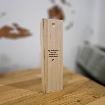 ¿Quieres mandar un mensaje? Hazlo con nuestra caja de madera para botella vino de 75cl, personalizable con nombres, frases o diseños. Elegancia y originalidad en un solo detalle.