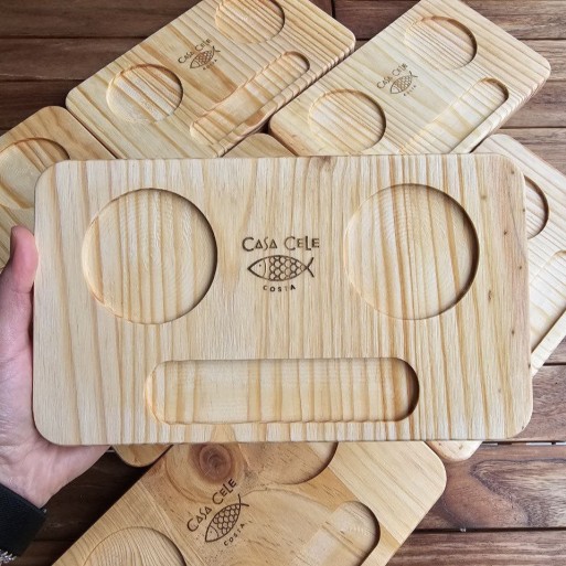 Las tablas están hechas de madera de pino 100% natural. Le aplicamos barniz apto para alimentación a cada una de ellas.